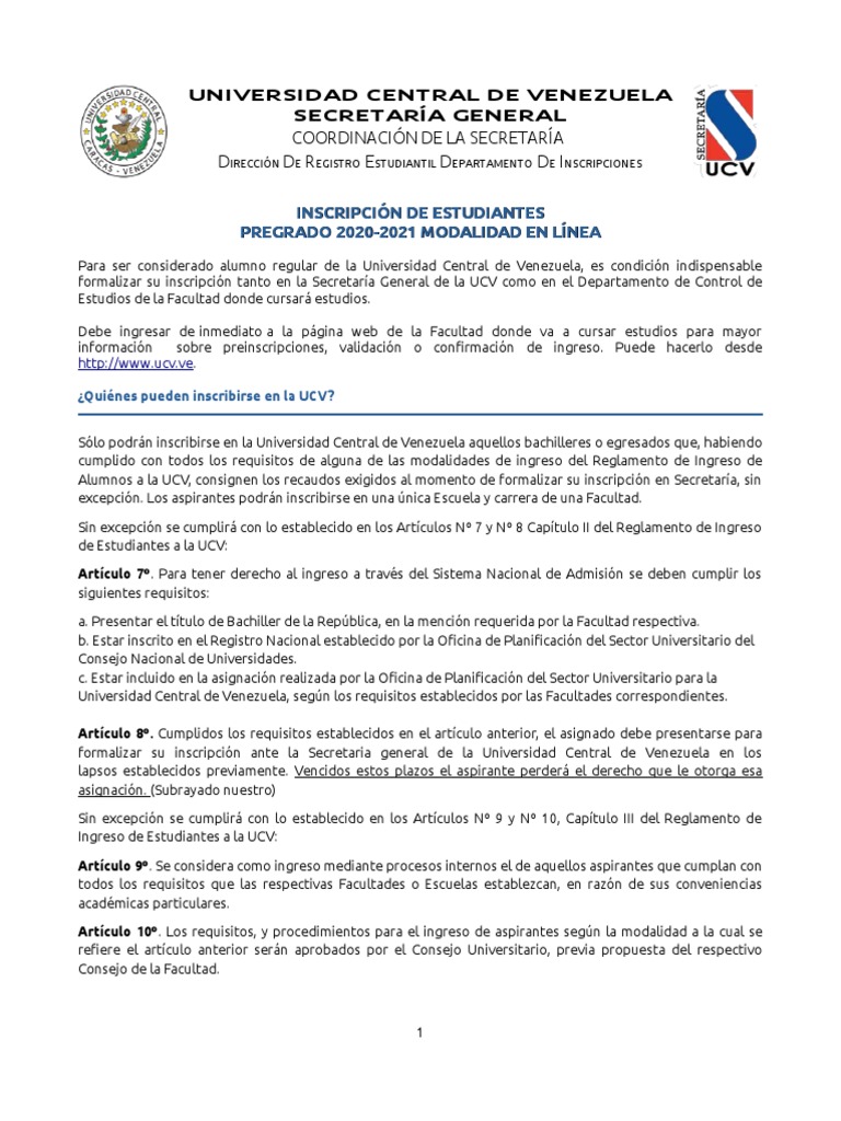 El proceso de inscripción en la UCV consta de los siguientes pasos: